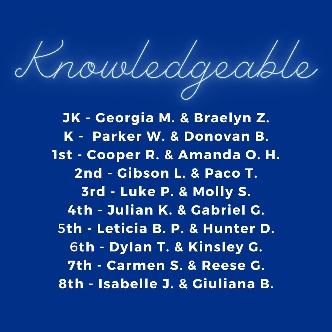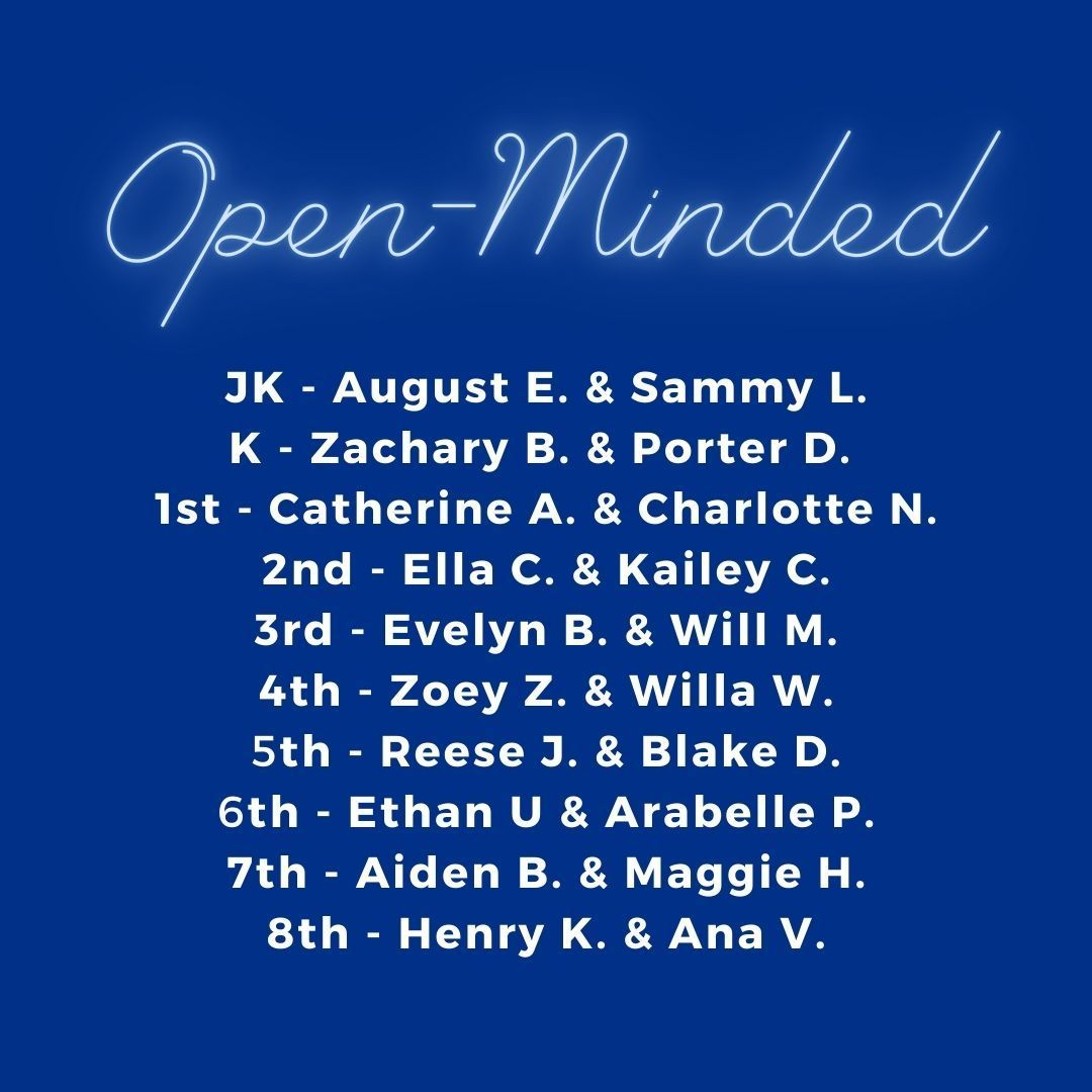 Caring learners appreciate culture and personal history, and the perspectives of others. They also show empathy, compassion, and respect toward the needs and feelings of others. Caring learners have a personal commitment to service, and they act to make a positive difference in the lives of others and to the environment. Congratulations to the following students in each grade!